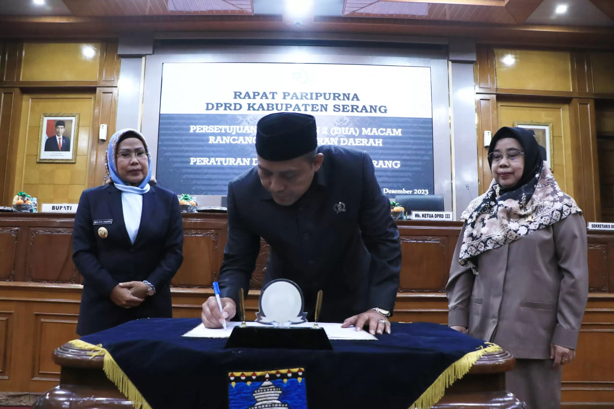 Serang, Suaraaspirasi.id – Dewan Perwakilan Rakyat Darah (DPRD) Kabupaten Serang menyetujui Rancangan Peraturan Daerah (Raperda) tentang Penyelenggaraan Sistem Pemerintahan Berbasis Elektronik atau SPBE menjadi Peraturan Daerah (Perda) Kabupaten Serang. Penetapan terungkap pada Rapat Paripurna DPRD Kabupaten Serang Persetujuan penetapan 2 (dua) macam Raperda menjadi Perda di gedung DPRD setempat pada Kamis, 21 Desember 2023.