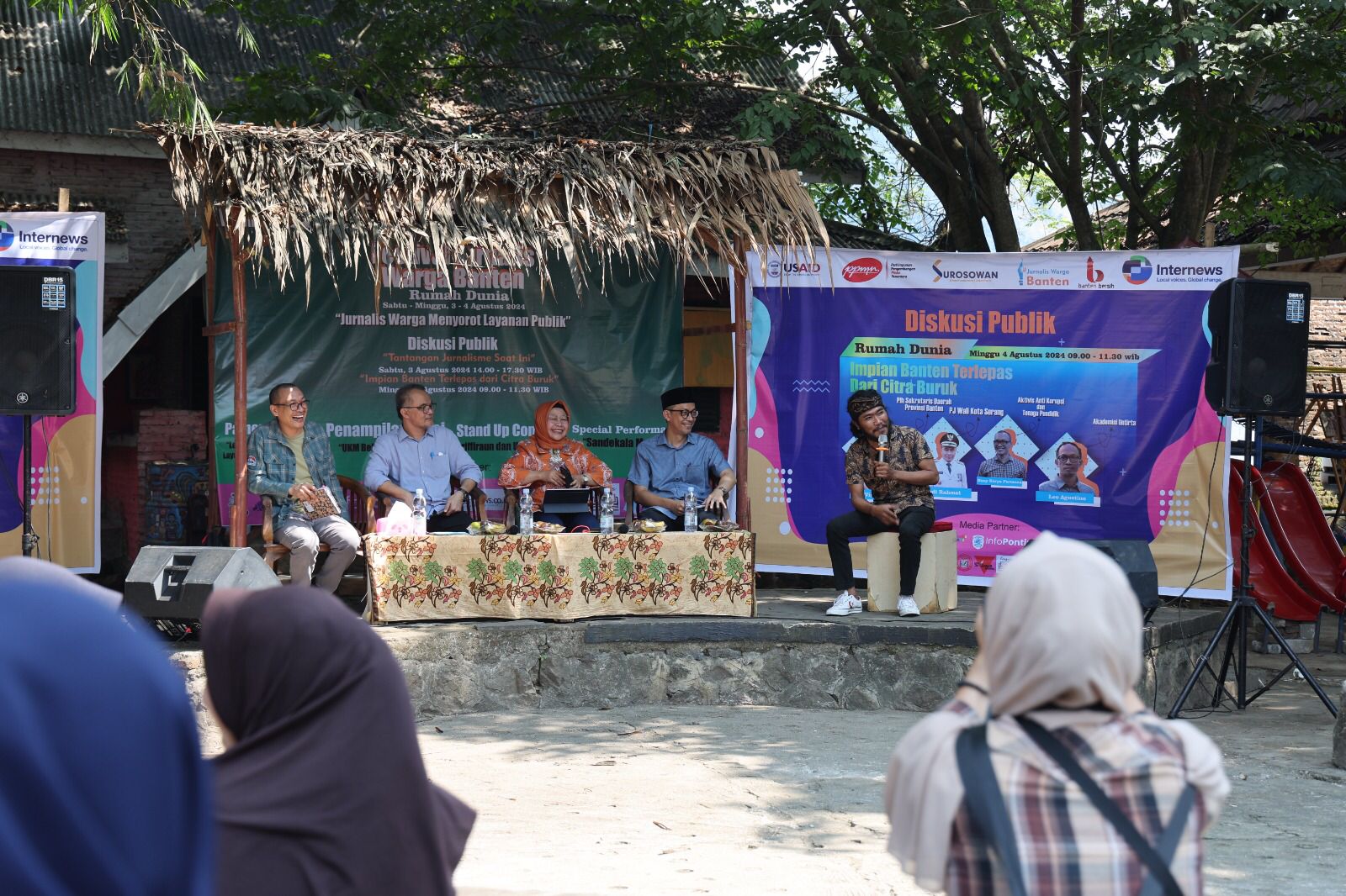 Untuk diskusi publik dengan tema ‘Impian Banten Terlepas Dari Citra Buruk’ diisi oleh Plh Sekda Provinsi Banten Virgojanti, Kepala Diskominfo Kota Serang Arif Rahman Hakim, Akademisi Untirta Leo Agustino, dan Pegiat Antikorupsi dan Tenaga Pendidik Deny Surya Permana. (Sa)