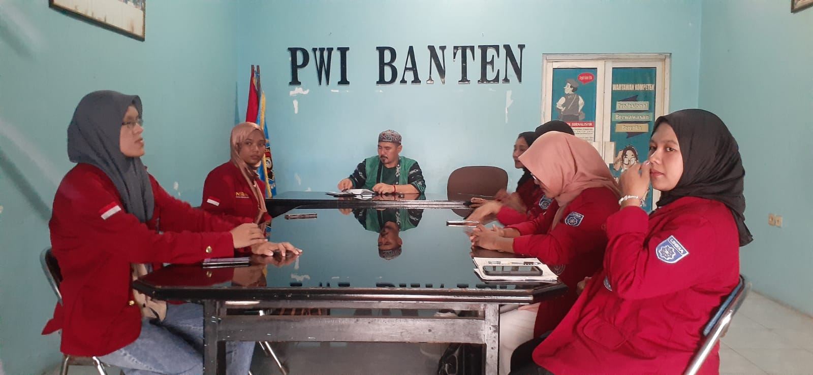 Kedatangan mahasiswi tersebut diterima oleh Fahdi Khalid, Sekertaris PWI Banten yang mewakili ketua PWI Rian Nopandra. Fahdi yang didampingi oleh Teguh Idham Akbar Wakil ketua bidang Organisasi menjelaskan jika fungsi PWI adalah mewujudkan kemerdekaan pers nasional yang profesional, bermartabat dan beradab.