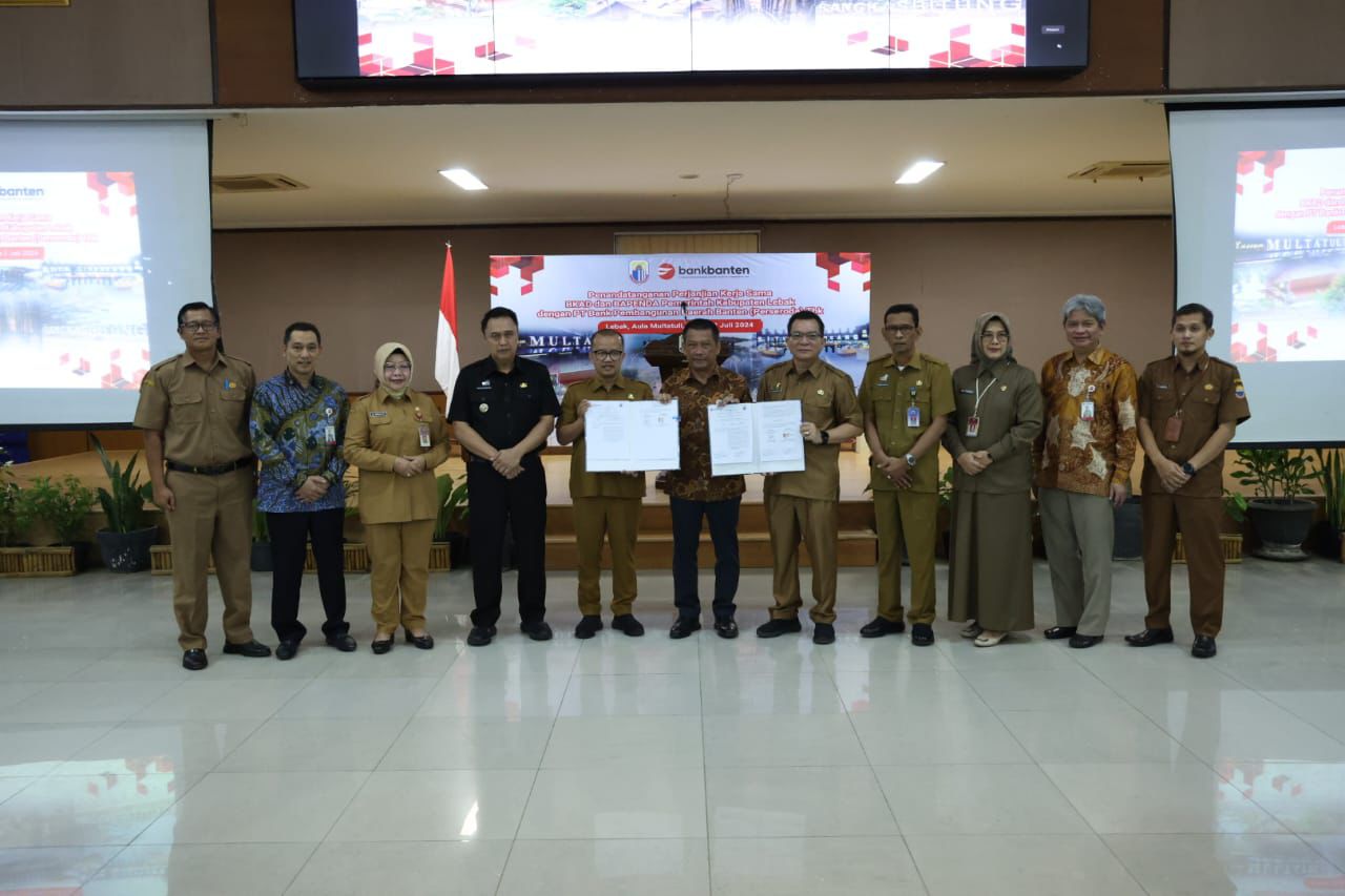 Penempatan RKUD ke Bank Banten itu ditandai dengan Penandatanganan Perjanjian Kerja Sama BPKAD dan Bapenda Pemerintah Kabupaten Lebak dengan PT Bank Pembangunan Daerah Banten (Perseroda) Tbk dilaksanakan di Aula Multatuli, Sekretariat Daerah (Setda) Kabupaten Lebak, Selasa (2/7/2024).