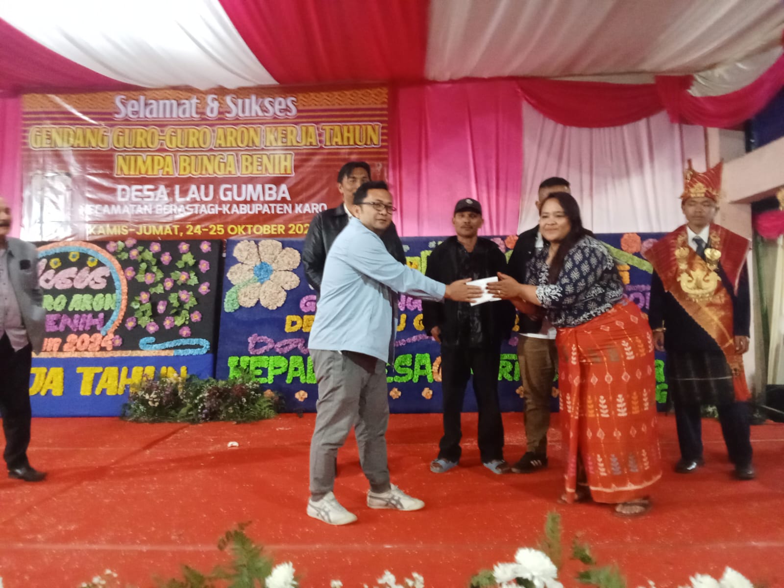 BERASTAGI KARO, Suaraaspirasi.id – Pasangan Calon (Paslon) Bupati dan Wakil Bupati Karo nomor urut 3 yang diwakili Onasis Sitepu hadir Kerja Tahun Guro Guro Aron Nimpa Bunga Benih,Jumat (25/10/2024) di Desa Lau Gumba Kecamatan Berastagi Kabupaten Karo Sumatera Utara.