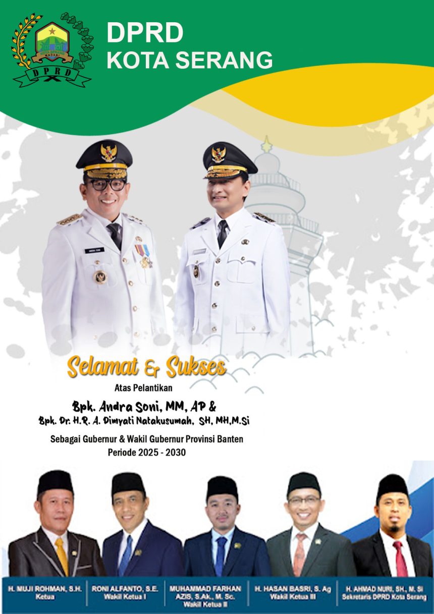 DPRD Kota Serang mengucapkan selamat dan sukses atas dilantikya Gubernur dan Wakil Gubernur Banten Priode 2025-2030.