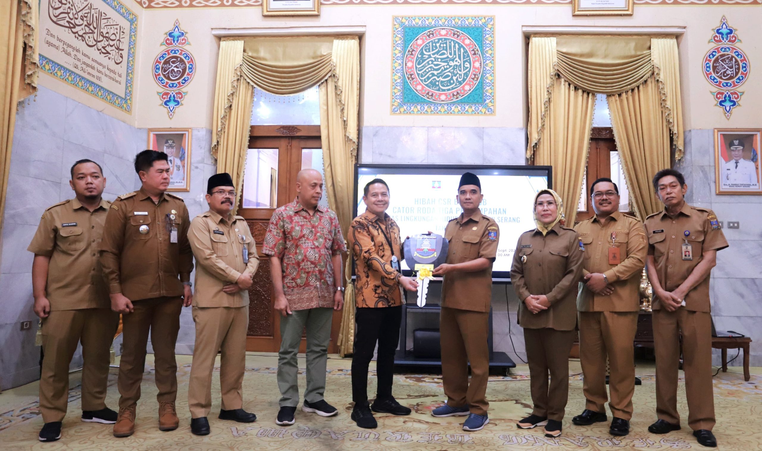 Serang, Suaraaspirasi.id – Pemerintah Kabupaten (Pemkab) Serang menerima 22 Cator Tiga Roda Persampahan Hibah CSR (Corporate Social Responsibility) atau tanggung jawab sosial Bank bjb Kantor Cabang Khusus (KCK) Banten. Secara simbolis, Cator diserahkan Kepala Bank bjb KCK Banten, Ujang Aep Saefullah kepada Ketua Apdesi yang juga Kepala Desa (Kades) Ciagel, Kecamatan Kibin Muhamad Yunus di pendopo Bupati Serang pada Senin, 23 September 2024.